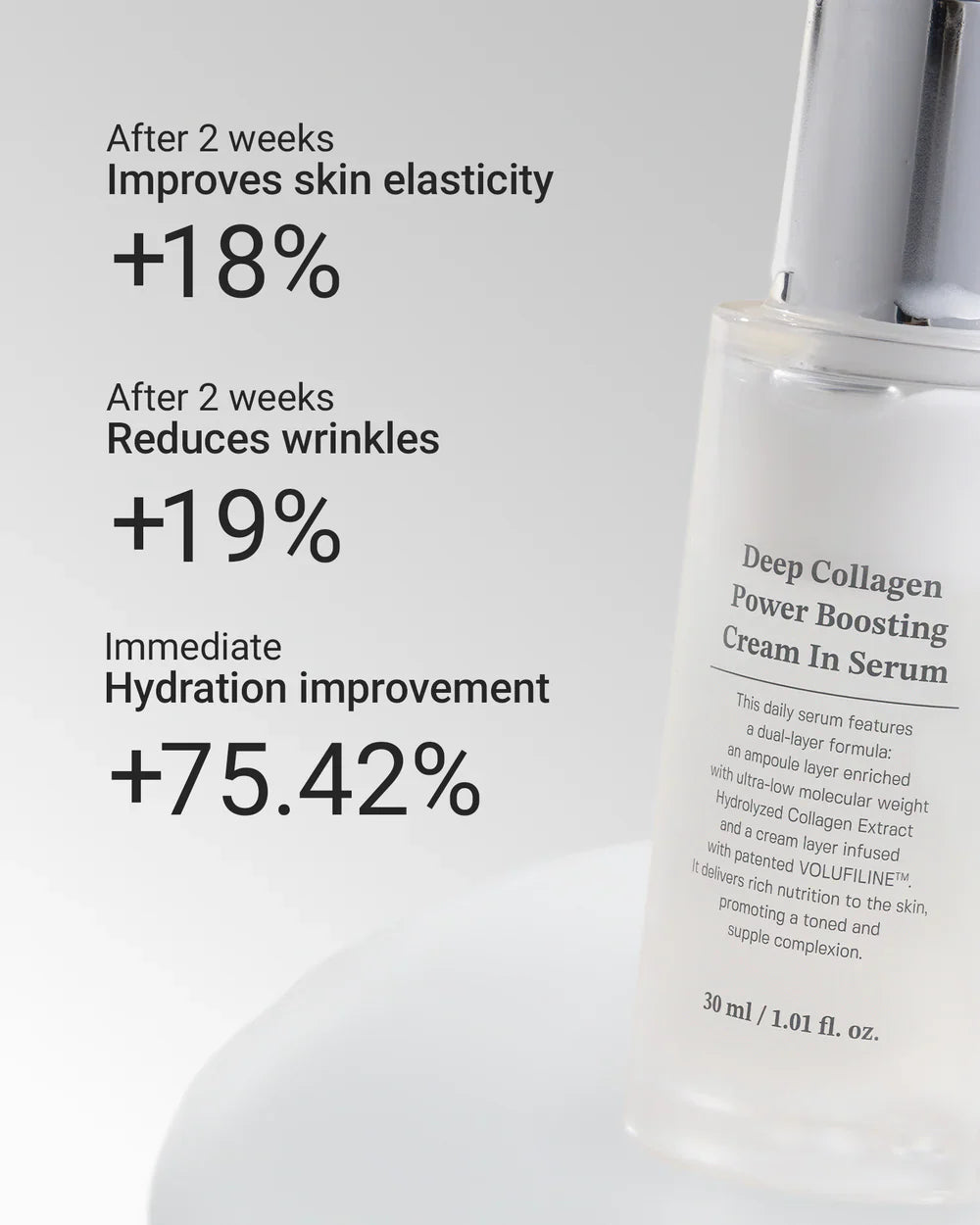 Most collagen creams use large molecules that sit on the surface. Our ultra-low molecular collagen (<300Da) is small enough to actually penetrate your skin barrier and rebuild structure from within. Plus, the 5% Volufiline stimulates your skin's own fat cells—something surface creams cannot do.
